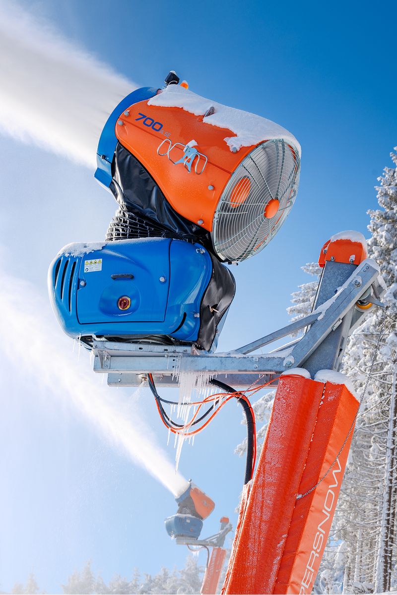 System naśnieżania SUPERSNOW w Orlické Záhoří obejmuje 32 armatki śnieżne – w tym modele 900 i 700 ASE, dobrane tak, aby idealnie odpowiadały profilowi trasy (armatki 700 dla węższych, 900 dla szerszych odcinków).