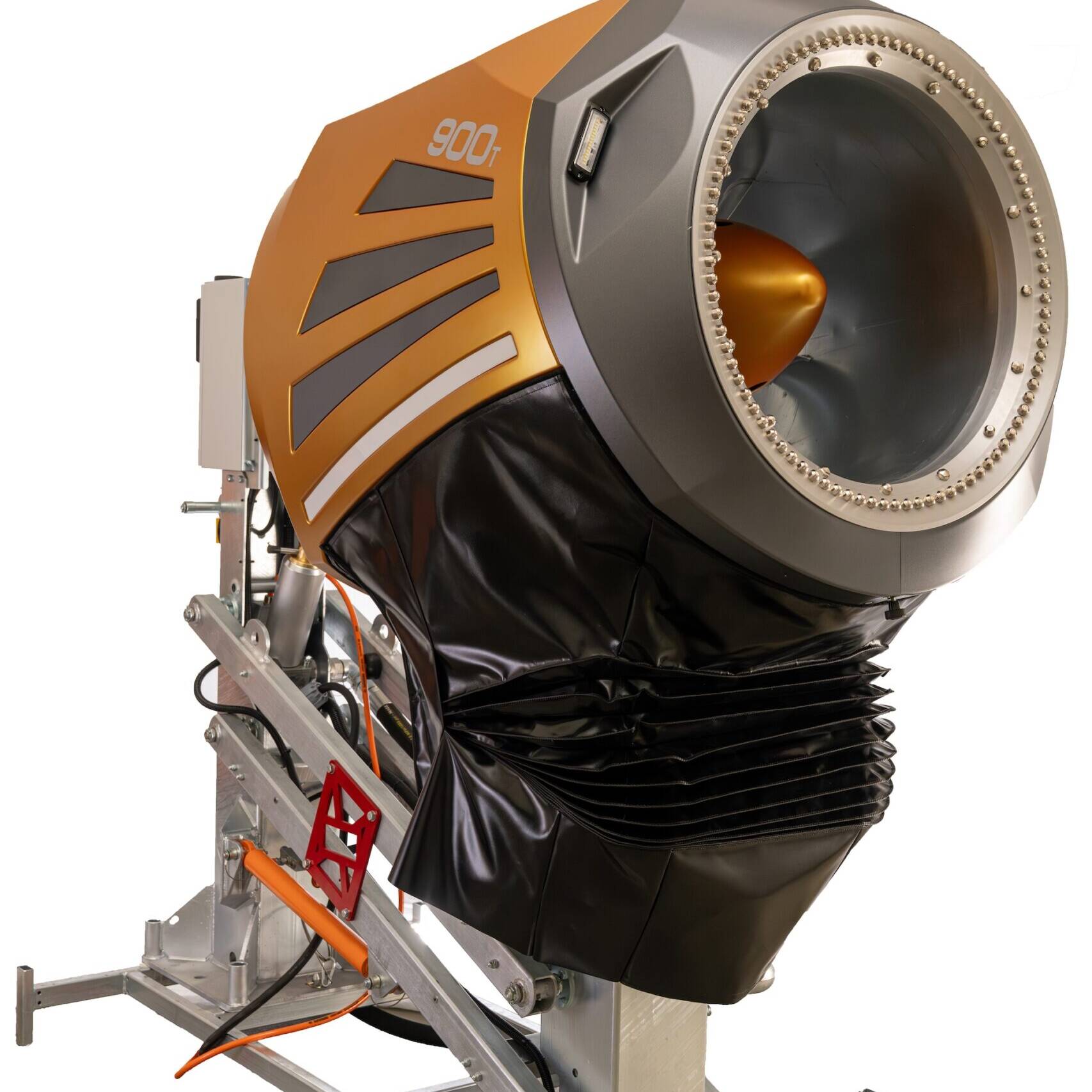 900T łączy najlepsze rozwiązania naszych flagowych modeli z innowacjami, które wynoszą proces naśnieżania na poziom wcześniej nieosiągalny. Wysoka przepustowość (do 11,08 l/s) i dopracowana aerodynamika pozwalają szybko budować pokrywę śnieżną nawet w krótkich oknach pogodowych. Dzięki konstrukcji słupa i układowi wylotowemu strumień śniegu trafia dokładnie tam, gdzie jest potrzebny — również na wąskich trasach i przy silnym wietrze. Kluczowa była jakość śniegu, bo to ona decyduje o realnej produkcji — w 900T połączyliśmy ją z najwyższą wydajnością i wyjątkowo prostym serwisem.