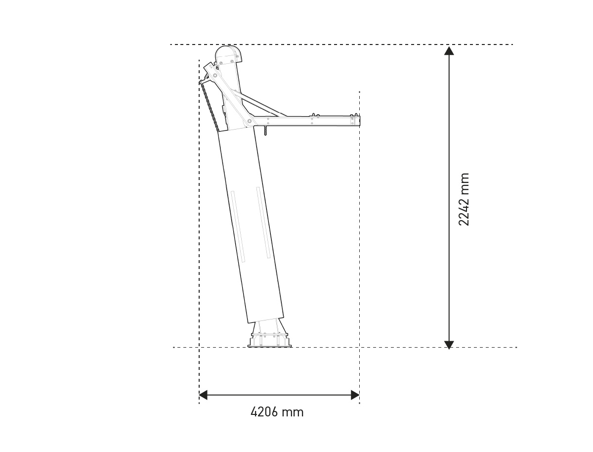 Prosta, ale przemyślana konstrukcja pozwala na łatwe i szybkie obniżenie platformy, co usprawnia serwisowanie urządzenia zamontowanego na wysięgniku.