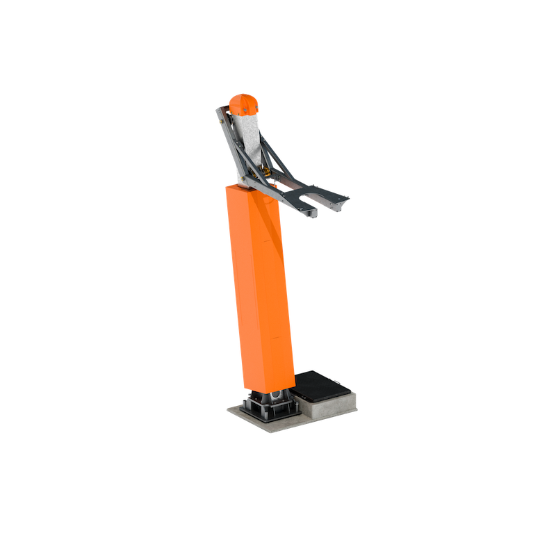 Prosta, ale przemyślana konstrukcja pozwala na łatwe i szybkie obniżenie platformy, co usprawnia serwisowanie urządzenia zamontowanego na wysięgniku.