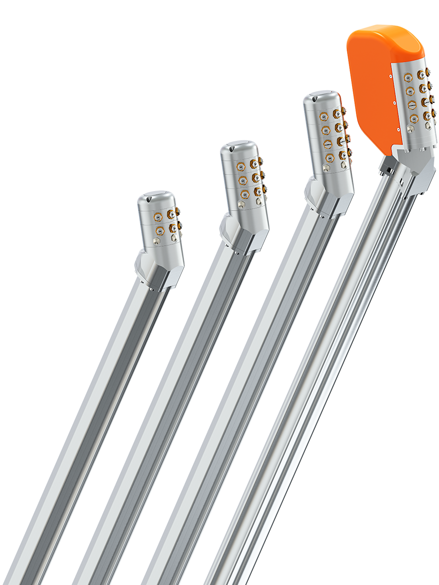 - Profil aluminiowy lancy z głowicą z trzema sekcjami dysz wodnych sterowanych i profilem wsporczym